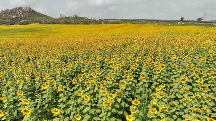 Çiçek açan ayçiçeği tarlaları görsel şölen sundu