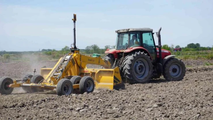 Edirne’deki çeltik arazilerinde ürünün suyu eşit alması için tarlalar lazerle düzenleniyor. Yüksek verimlilik için "çeltik tavası" da denilen tarlalar lazerli ekipmanla düzleştiriliyor. Tavalar ardından su ile doldurulup, tohum toprakla buluşturulacak.