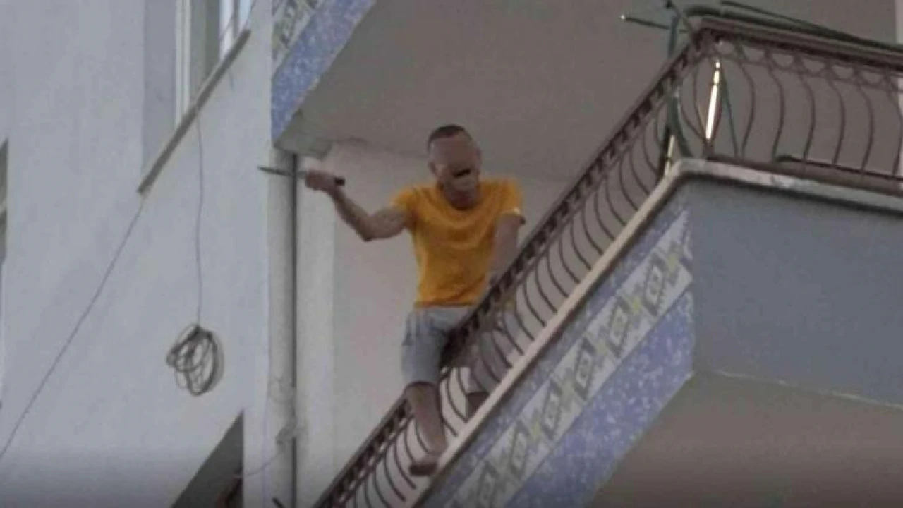 Çocuklarını odaya kilitledi, balkondan bıçakla dehşet saçtı