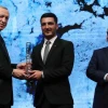 Cumhurbaşkanı Recep Tayyip Erdoğan, Şehit Mustafa Cambaz Fotoğraf Yarışması’nda dron kategorisinde birincilik kazanan İHA foto muhabiri İsmail Coşkun’a ödülünü verdi.