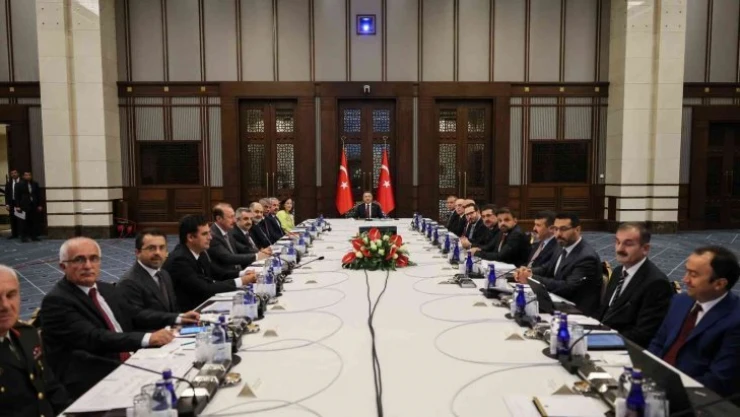 Cumhurbaşkanı Yardımcısı Fuat Oktay, Cumhurbaşkanlığı Külliyesi’nde düzenlenen Türkiye Coğrafi Bilgi Sistemi Kurulu 4. Toplantısı’na katıldı.