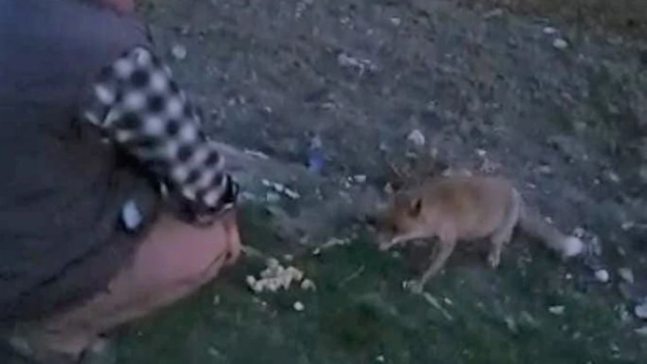 Davetsiz misafiri tilkiyi her gün elleriyle besliyor