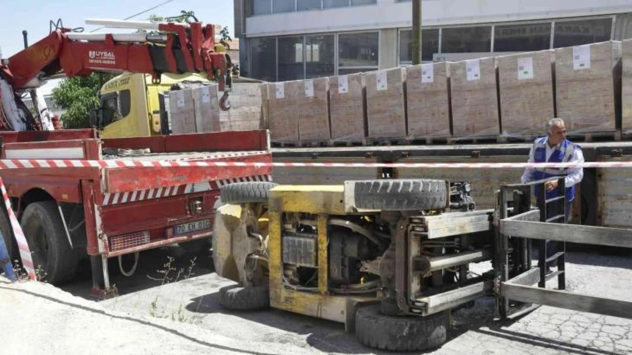 Karaman’da çekiciden yük indirirken devrilen forkliftin altında kalarak sıkışan operatör, itfaiye ekipleri tarafından bulunduğu yerden kurtarıldı. Yaralı operatör hastanede tedavi altına alındı.