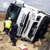 Devrilen tırın kupasında sıkışan sürücü can verdi