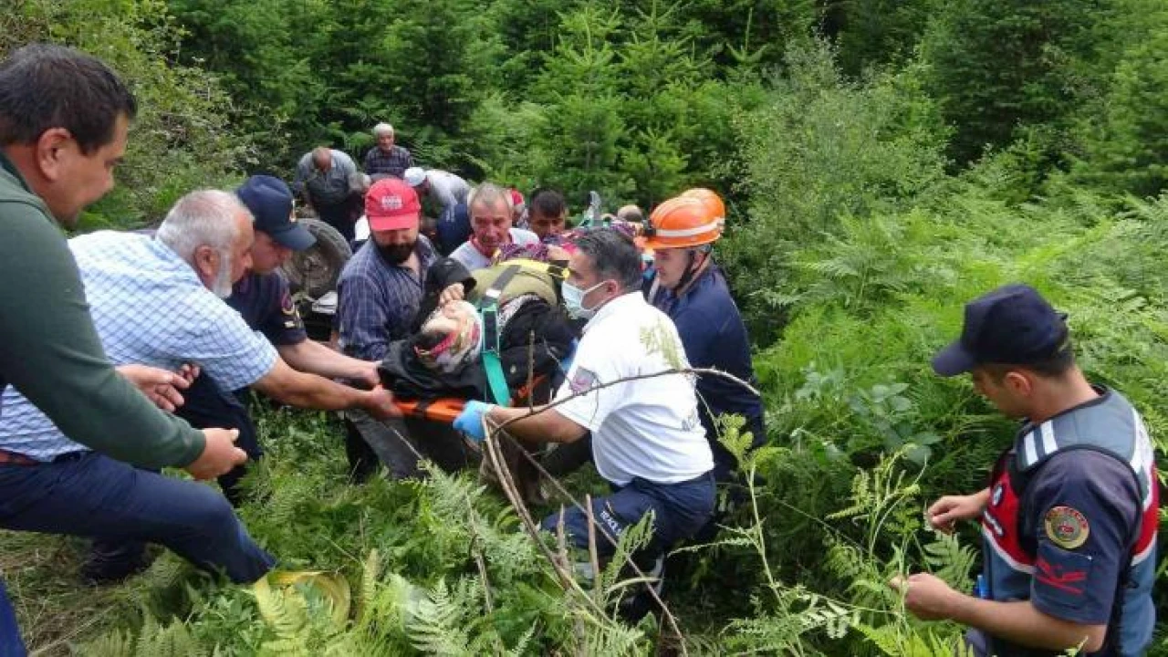 Bolu'da seyir halindeyken kontrolden çıkarak ormanlık alana devrilen traktördeki anne ve oğlu kazadan yaralı kurtuldu.