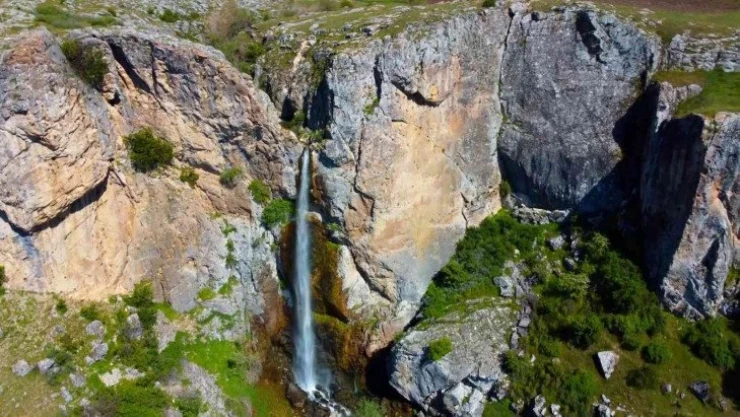 Çorum’da güzelliği ile kendisine hayran bırakan ve keşfedilmeyi bekleyen Budakören Şelalesi havadan görüntülendi.