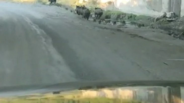 Domuz sürüsünü gören vatandaşlar ise o anları cep telefonları ile kaydetti. Görüntülerde yol kenarındaki domuz sürüsünün araçları görünce koşarak uzaklaştığı görülüyor.
