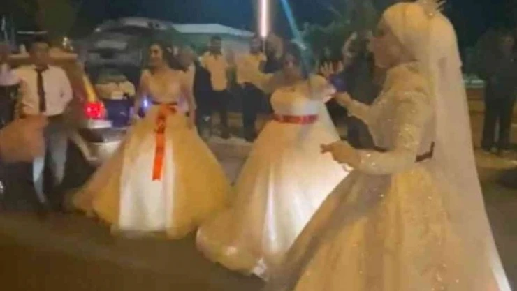 Dilek Karakurt ve Kenan Saraç çifti düğünden çıkıp sahil turu atarken genç çiftin yakınları konvoyu durdurup müzik eşliğinde oynamaya başladı. Bu sırada sahilde tur atan başka bir gelin arabası daha durduruldu ve onlar da oyuna davet edildi. Gece yarısı trafiğin sakin olduğu sahil bulvarında üçüncü gelin arabasının da denk gelmesi ile üç gelin üç damat sahil bandında ikinci kez kurulan düğün ortamında gönüllerince eğlendi.