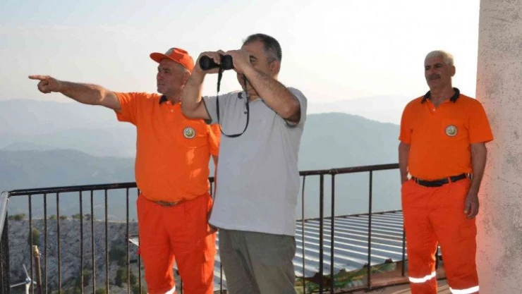 Yaylacık Tepesi gözetleme kulesinde görev yapan orman işçisi Mehmet Sağlam, nöbet esasına göre çalıştıklarını söyledi. Bölgede ’yangın mevsimi’ olarak kabul edilen 6 ay boyunca gözetleme yaptıklarını kaydeden Erol, "Sorumluluğumuzun farkındayız, bu nedenle görevimizi en iyi şekilde yapmanın gayreti içindeyiz. Kulede görevli arkadaşlarımla dönüşümlü olarak orman alanlarını izliyoruz. Ormanlık alanlarda en küçük bir duman görmemiz durumunda anında telsizle merkez kuleye bildirerek, dumanın görüldüğü yere en yakın yangın müdahale ekiplerinin yangın bölgesine yönlendirilmesini sağlıyoruz” dedi.