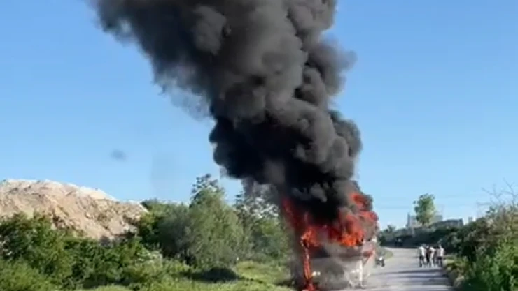 Edirne’de fabrika işçilerini taşıyan minibüs alev alev yandı. Sürücünün durumu erken fark ederek yolcuları tahliye etmesi faciayı önledi.
