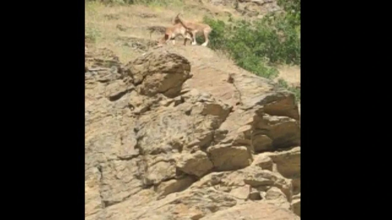 Elazığ'ın Sivrice ilçesine bağlı Kayapınar köyünde yaban keçisi sürüsü görüldü.