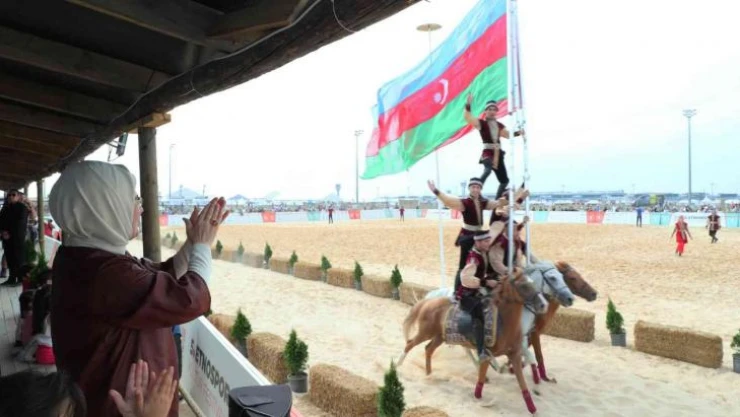 Karabağ Atlı Gösteri Ekibi’nin gösterisini izleyen Emine Erdoğan, ardından Türk İşbirliği ve Koordinasyon Ajansı Başkanlığının (TİKA) organizasyonuyla 20 ülkenin yöresel lezzetleri, hediyelik eşyaları, kıyafetlerinin sergilendiği "Evrensel Lezzetler" standını gezdi.