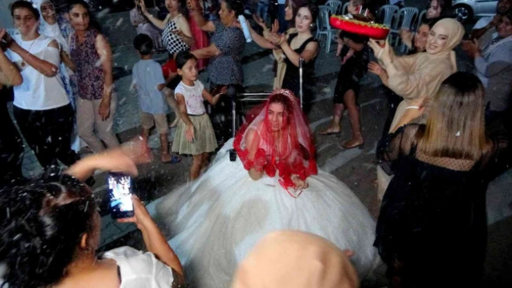 Osmaniye'de doğuştan zihinsel ve fiziksel engeli bulunan 19 yaşındaki Ayşegül Ayçiçek'in beyaz gelinlik giyme hayali gerçek oldu. Ailesi tarafından temsili olarak hazırlanan düğünde beyaz gelinliğini giyerek kına yakılan Ayşegül'ün mutluluğu yüzünden okundu.