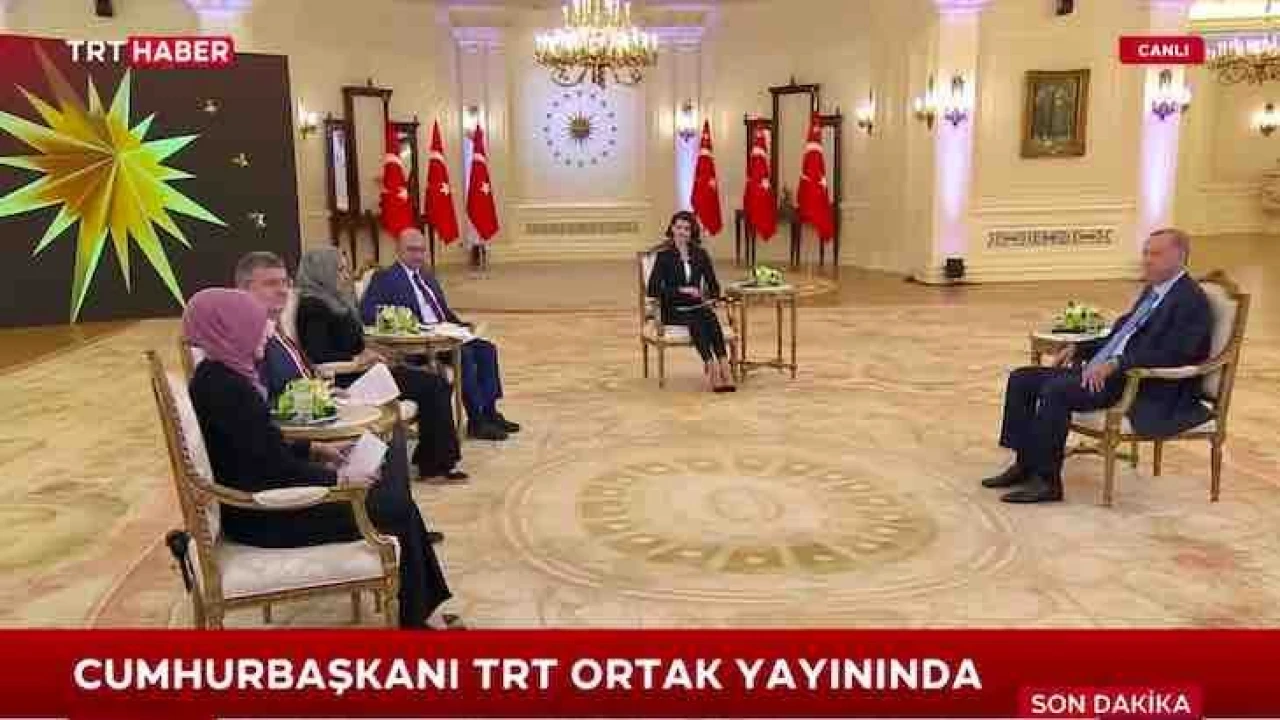Recep Tayyip Erdoğan, gündemdeki gelişmelerle ilgili Sabah gazetesi Ankara Temsilcisi Okan Müderrisoğlu ile gazeteciler Hale Kaplan, Nuriye Çakmak Çelik ve Mehmet Acet'in sorularını TRT ortak yayınında cevapladı.