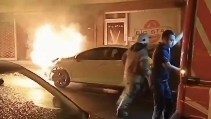 Olay yerine gelen itfaiye ekipleri, yanan otomobile müdahale ederek yangını kontrol altına aldı. Polis ekipleri konuyla ilgili çalışma başlattı.