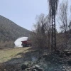 Karadere, tarla içerisinde bulunan sera ve kulübenin yangında küle döndüğünü, evin çatısında da maddi hasarın oluştuğunu ifade etti.