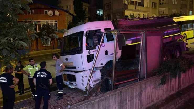 Kocaeli'nin Gebze ilçesinde freni boşalan kimyasal madde yüklü tanker, önce direğe sonra otobüs durağına çarptı. Kazada tankerin sürücüsü yaralandı.