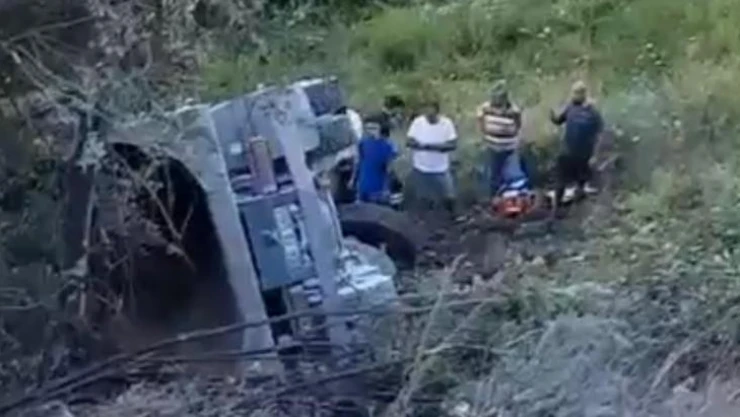 Freni patlayan kömür kamyonu uçuruma devrildi