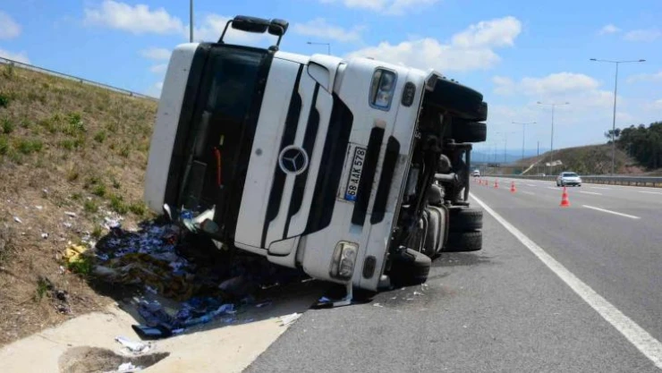 Kaza, Kuzey Marmara Otoyolu Kocaeli geçişi Sevindikli mevkiinde meydana geldi. Edinilen bilgiye göre, İ.A. idaresindeki 68 AAK 911 plakalı tır, sürücüsünün hakimiyeti kaybetmesi neticesinde refüje çarpıp yan yattı. Geri dönüşüm için toplanan kağıtları taşıyan tırın yakıt deposu delinince yola yağ sızdı. Kazanın 112 Acil Çağrı Merkezine bildirilmesi üzerine jandarma ekipleri olay yerine sevk edildi. Sızan yağın temizlenmesi için yolun bir şeridi trafiğe kapandı. Ekipler, kısa sürede yolun temizleyerek başka bir kaza riskini ortadan kaldırdı.