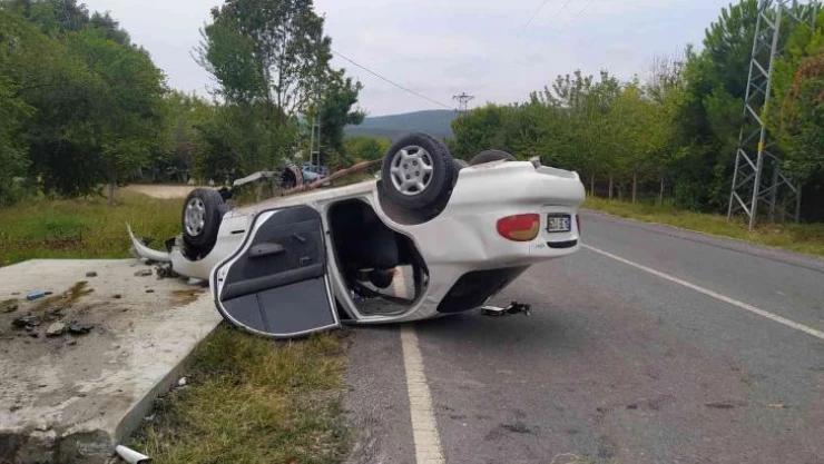Çatalca'da hastaneden aldığı komşusuyla eve doğru yola çıkan bir kişi, kullandığı otomobilin direksiyon hakimiyetini kaybedince beton durağa çarpıp takla attı. Kazada 1'i ağır olmak üzere iki kişi yaralandı.
