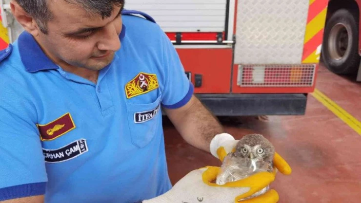 Havalandırma boşluğuna düşen yavru baykuşu itfaiye kurtardı