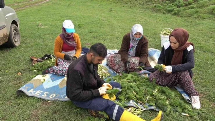 Bitlis'in Tatvan ilçesinde ilkbahar aylarında yaylalarda yetişen ve vatandaşlar tarafından her derde deva olarak bilinen heliz otunu toplama mesaisi başladı.