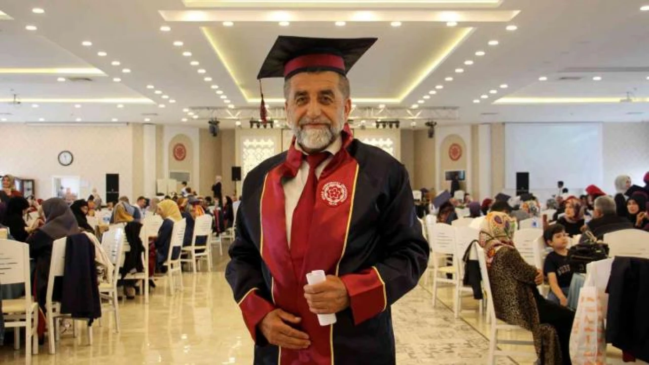 Sivas Cumhuriyet Üniversitesi İlahiyat Lisans Tamamlama programında öğrenim gören 62 yaşındaki Adnan Coşkun, torunları yaşındaki öğrencilerle birlikte mezuniyet sevinci yaşadı.