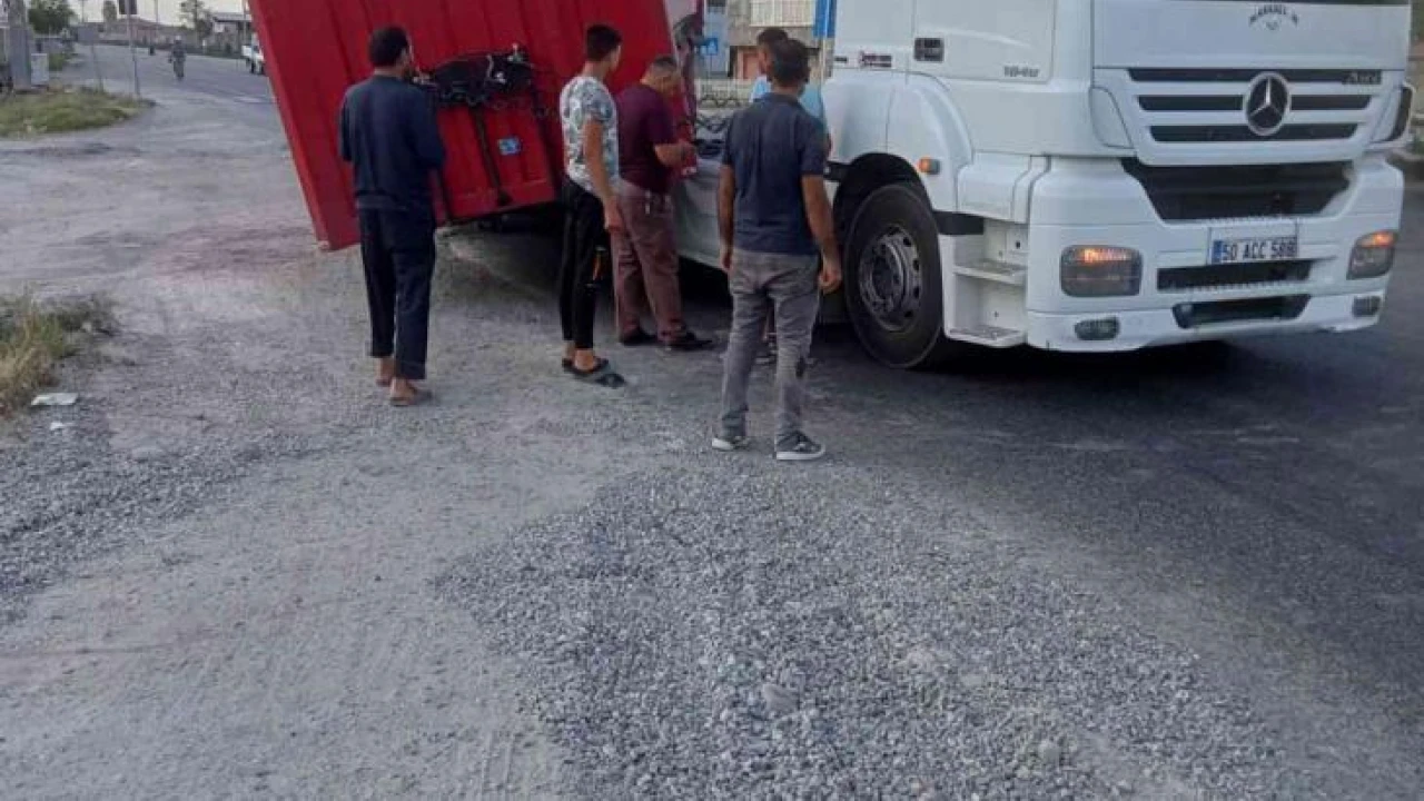 Iğdır’da kavşağı dönen tırın dorsesinin çekiciden ayrılması sonucu korku dolu anlar yaşandı.