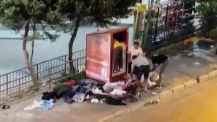 Öte yandan o anlar bir vatandaş tarafından cep telefonu kamerası ile kayda alındı. Görüntülerde park halindeki otomobil ve kutunun çevresinde duran 5 kişinin kıyafetleri kutunun içerisinden alması ve seçtiği anlar yer aldı.