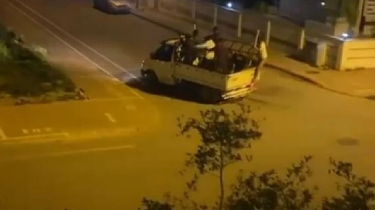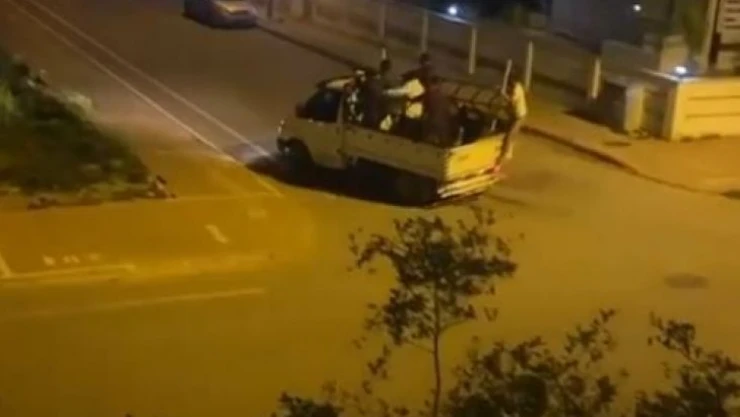 Antalya'da kavga eden iki yabancı uyruklu grubun, ellerinde sopalar ile karşı tarafı kamyonet üzerinde kovalamaları ve silah sesleri cep telefonu kamerasına yansıdı.