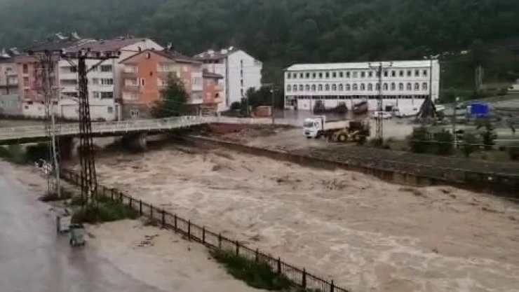 İlçeyi birbirine bağlayan köprü sel sularıyla yıkıldı