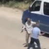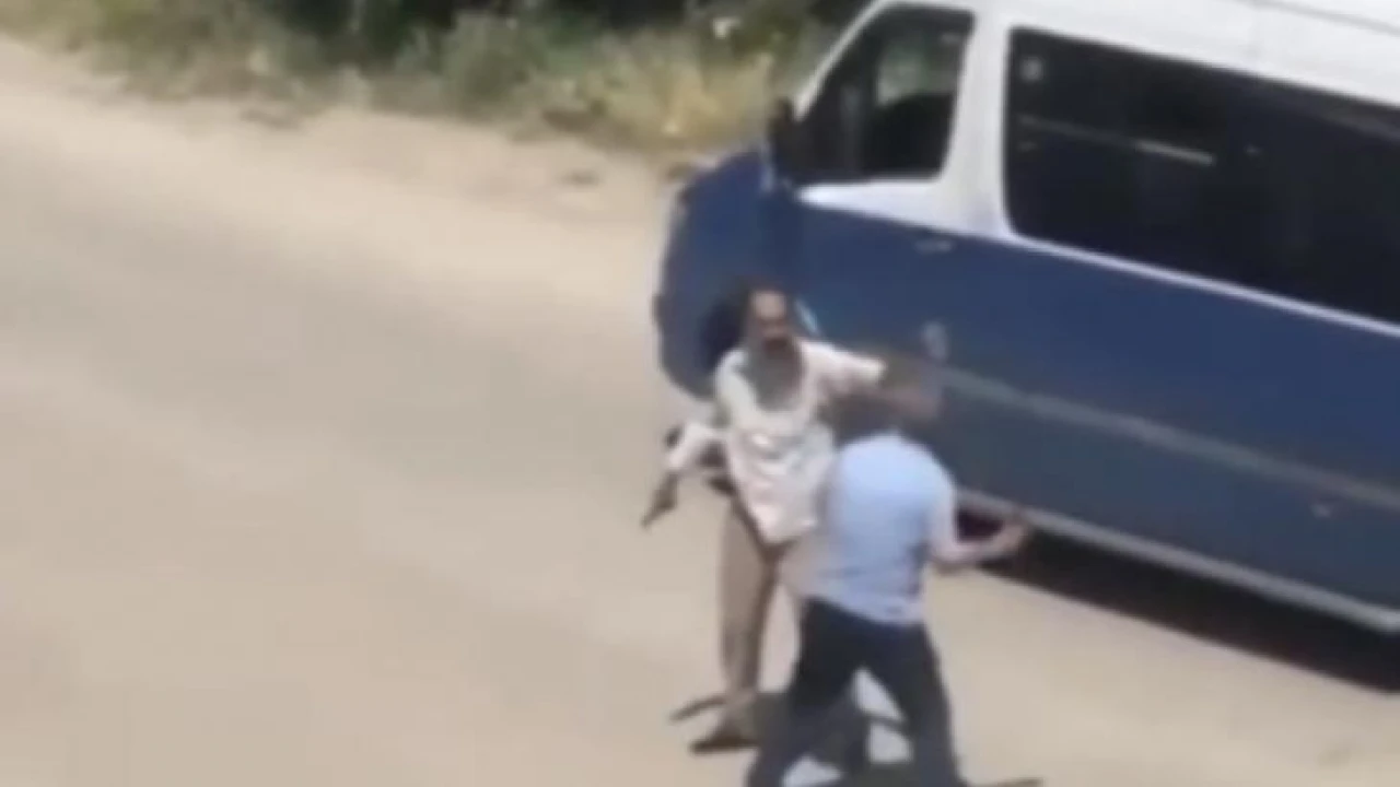 İşçi servisi ile minibüs şoförünün silahlı, sopalı kavgası kamerada