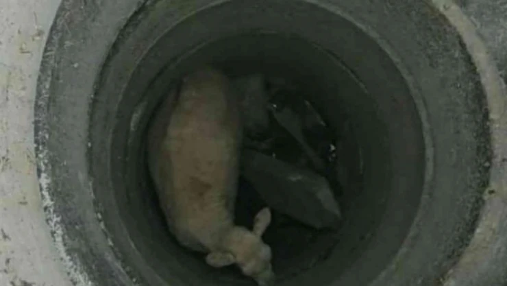 İtfaiye ekipleri rögara düşen küçükbaş hayvan için seferber oldu