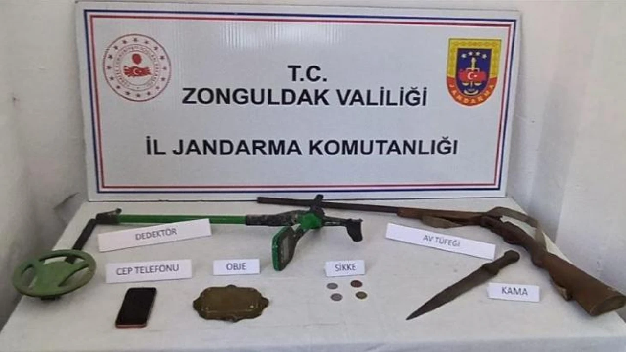 Edinilen bilgiye göre, Zonguldak İl Jandarma Komutanlığınca yapılan çalışmalar sonucunda Çaycuma ilçesinde 1 kişinin evine baskın düzenlendi. Baskın esnasında ekipler evde 1 adet pirinç tarihi obje, 1 adet hançer, 4 adet sikke, 1 adet detektör ve 1 adet av tüfeği ele geçirildi. Jandarmada ekiplerince yakalanıp ifadesi alınan şüpheli adliye sonrası müteakip serbest bırakıldı.