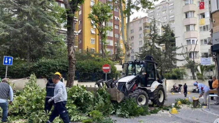 Kadıköy'de etkili olan şiddetli rüzgar nedeniyle ağaç devrildi. Bir binanın üzerine devrilen ağaç, olay yerine gelen Kadıköy Park ve Bahçe Müdürlüğü'ne bağlı ekipler tarafından kesilerek kaldırıldı.