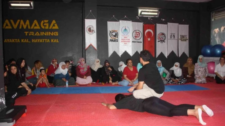 Diyarbakır'ın Bağlar ilçesinde kadınlar şiddet, taciz ve kapkaç gibi olaylarla karşılaşmaları halinde kendilerini savunabilmek için pars taktik savunma öğreniyor.