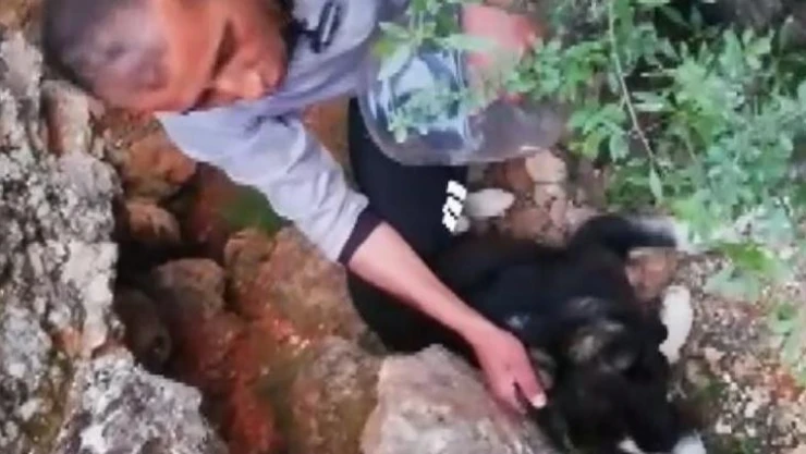 Kurtarılan köpek, daha sonra tekrar bulunduğu ormanlık alana bırakıldı.