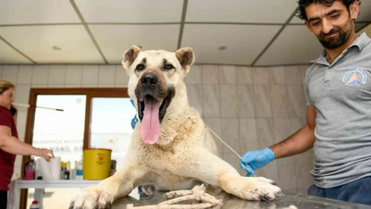 Köpek, tedavi için Muratpaşa Belediyesi’nin Sokak Hayvanları Geçici Bakımevi ve Rehabilitasyon Merkezi’ne getirildi. Belediyenin hayvan nakil aracıyla alınan köpeğin burada gerekli tüm kontrol ve muayeneleri yapıldı.