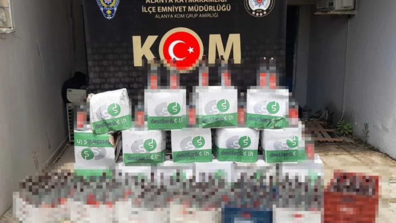 Alanya ilçesi Payallar Mahallesi’nde tabelasız ve kapalı otele polis ekipleri baskın yaptı. Yapılan incelemelerde yangın çıkışının bir alt katının alçı ile kapatıldığı belirlendi. Gizli bölmeye giren polis ekipleri, yaptıkları aramalarda bir litrelik şişeler halinde 348 adet sahte içki ile 25 adet sahte bandrol ele geçirdi. Olayda gözaltına alınan M.S. (47) hakkında adli işlem başlatıldı.