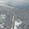 Karabük - Bartın Karayolu 1030 rakımlı Ahmetusta geçidinde sabah karşı etkili olan kar yağışı sonrası karayolları ekipleri yol güzergahında kar küreme ve tuzlama çalışması yaparken, zaman zaman güneşinde yüzünü gösterdiği bölgede beyaz örtüyle kaplanan eşsiz doğa ise havadan dron ile görüntüledi.