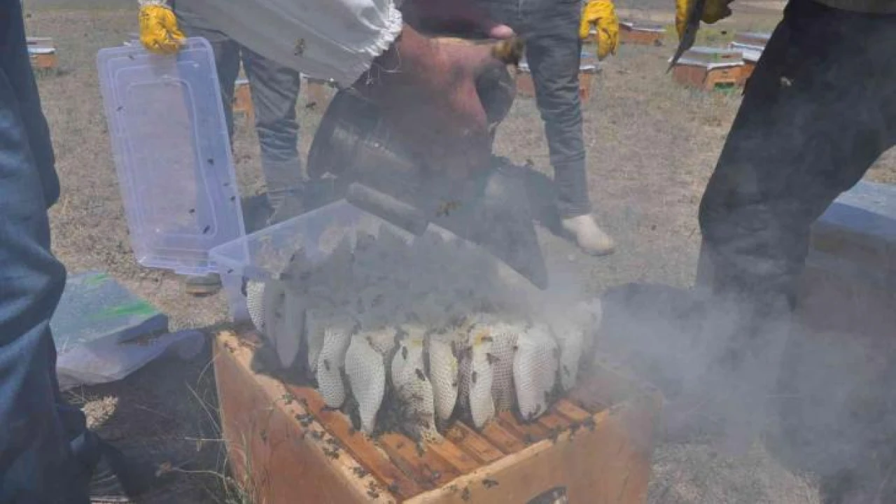 Bin 900 rakımlı Digor yaylasına ilkbaharda Iğdır’dan getirdiği 300 kovanın bal hasadına başlayan 3 çocuk babası Murat Suner, yüzüne taktığı özel maskeyle kovanların arasında duman çıkaran körük yardımıyla arıları uzaklaştırıyor. Çalışanlarla birlikte tek tek petekleri çıkararak ve kutulara koyan Suner, 3 kuşaktan beridir dede mesleğini icra ederek ailesini geçimini sağlıyor.