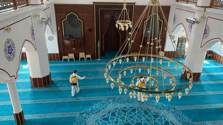 Kartal'da on bir ayın sultanı Ramazan ayının ilk gününde ilçedeki tüm camilerde dezenfekte çalışmaları yürütülüyor. Kartal Belediyesi'ne bağlı ekipler, camilerin ortak kullanım alanlarında teravih namazlarının başlamasıyla da detaylı iç ve dış dezenfekte çalışmalarını gerçekleştirdi.
