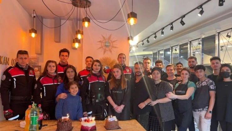 Edirne'de bir esnaf tarafından Türk Polis Teşkilatı'nın kuruluşunun 177. Yılı dolayısıyla Motosikletli Yunus Timlerine pastalı sürpriz yapıldı.