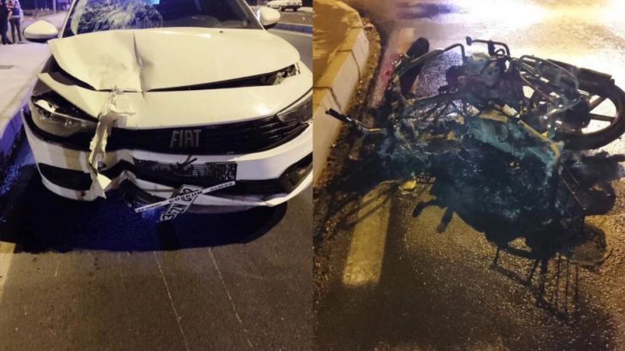Mersin'in Erdemli ilçesinde otomobille motosikletin çarpışması sonucu meydana gelen trafik kazasında, yanan motosikletin sürücüsü hayatını kaybetti.