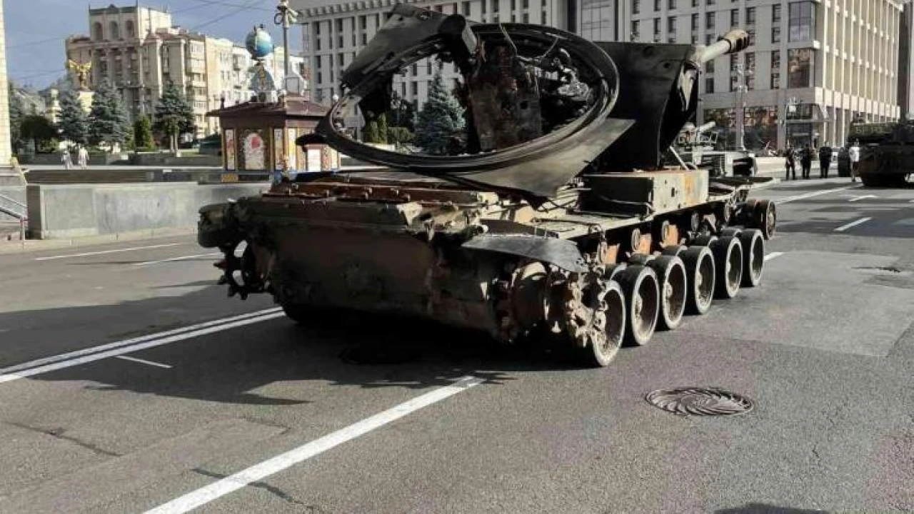 Kiev'de, Rus ordusunun ele geçirilen tankları sergileniyor