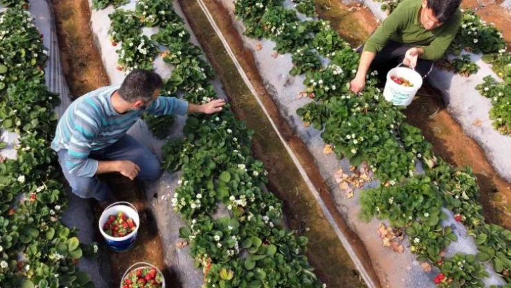 Kilosu 25-30 TL'ye satılan örtü altı çilek, üreticisini sevindiriyor