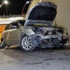 Kontrolden çıkan otomobil demir bariyerlere çarptı