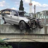 Köprünün korkulukları otomobile ok gibi saplandı: 1 yaralı