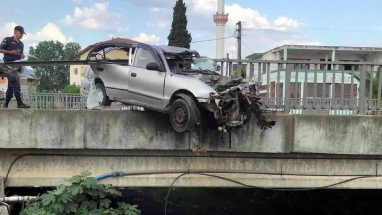 Samsun'da yoldan çıkan otomobilin köprünün korkuluklarına çarpması sonucu meydana gelen kazada köprünün demir korkuluğunun ok gibi saplandığı araçtaki sürücü kazayı yaralı olarak atlattı.