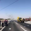 İtfaiye ekipleri tarafından yangın kontrol altına alınırken, tır kullanılmaz hale geldi.